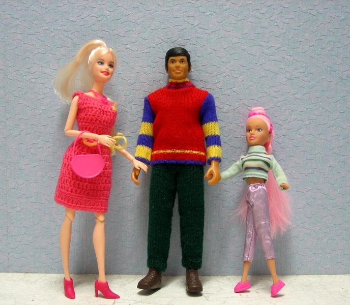 Clone family Barbie Ken en puber dochterBijzondere clone family met hun puber dochter met roze haren.