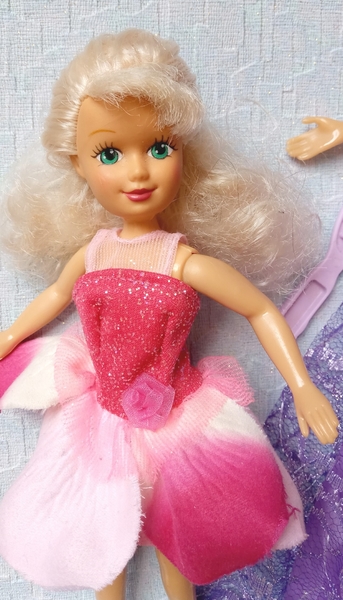 Pop df met dochter barbie [pop0006]DF pop in paarse jurk MET DOCHTER en tasje en borstel Ze kunnen hun benen buigen. gewrichten zijn stevig Ze zien er prachtig uit.