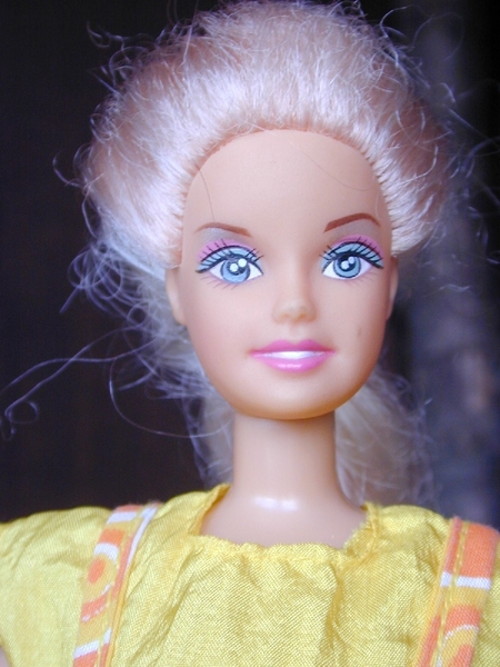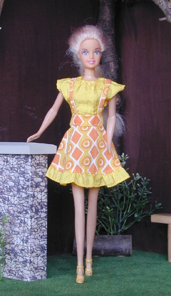 DF pop in zomerjurk. Als Barbie [POP51]DF pop in gele zomerjurk. De pop lijkt op barbie is even groot ook als haar. De benen kunnen buigen en armen kunnen zijwaarts bewegen.