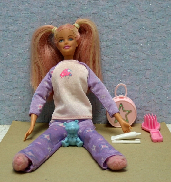 Slaap Barbiepop Mattel met zacht lijfje [POP86]Slaap Barbie met ZACHT LIJFJE flexibel en een borstel met lichtgevende haarstrengen die oplichten in het donker als je ze even onder een lamp houd. Uit een rookvrije en diervrije omgeving.