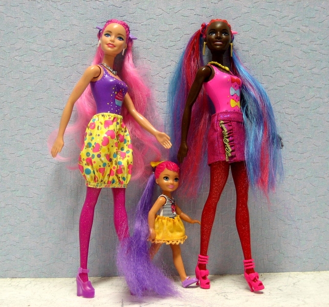 Color Reveal Barbie glitter en shelly [pop210]Color Reveal glitter serie van 2 met verwisselbare haarstukken.